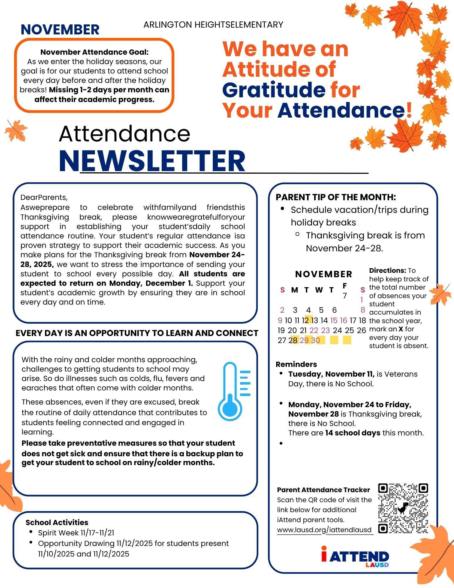 November Attendance Newsletter/ Noviembre noticiero de asistencia
